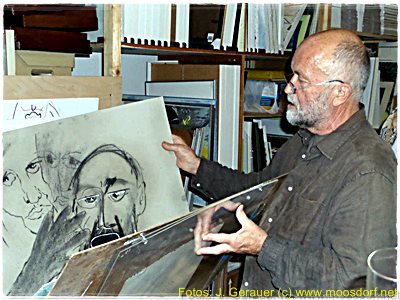 Gut gelabt gab’s eine Führung durch sein Atelier. Wähner‘s Vielseitigkeit machte ein „wähnig“ sprachlos und zum Beispiel vor seinen Portraits war zu hören:„Ich hatte bisher nur eine einseitige Meinung. Bin völlig überrascht, was Wähner alles kann!“ Kurz: es war ein sehr netter Abend, bei dem der Mensch Siegfried Wähner und sein künstlerisches Schaffen in überraschend neuer Sicht kennengelernt wurde!