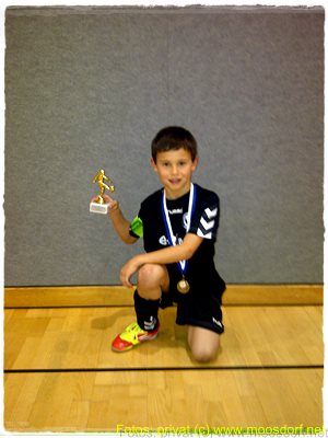 Und offenbar hat Jonas auch vor in 2014 genauso weiter zu machen. Letztes Wochenende war´s in Oberndorf, als der Jonas mal wieder machte, was er am liebsten macht: Tore schießen. 8 Mannschaften spielten im U10 Turnier und seine Mannschaft wurde Turniersieger ohne Gegentreffer. 2:0 ging das Halbfinale gegen Lamprechtshausen aus – die zwei Tore machte… Genau: der Jonas. Und dann gab es das 1:0 im Finale gegen SV Austria Salzburg. Das Tor kam auch von Jonas – und zwar innerhalb der ersten vier Minuten. Und auch wenn die künftigen Gegner es Jonas und seiner Mannschaft nicht ganz leicht machen werden: wir drücken schon mal die Daumen!