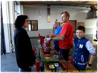 Im Feuerwehrhaus wurde vom Team Rossner die mitgebrachten Feuerlöscher überprüft – und mehr: Experte Walter Rossner gab im Gespräch viele Informationen über die gesetzliche 20jährige Lebensdauer der Löschgeräte, dass ein Löscher in der Garage bereit hängen oder stehen muss, welcher Löscher-Typ gegen welche Feuerquelle (Heizraum, Küche, Garage) einzusetzen ist, auf welche Gefahren beim Löschen zu achten ist und vieles mehr. Ein Besuch lohnte sich also. Sehr wertvoll ist aber alleine schon die Zweijährliche Einladung unserer FF zur Überprüfung der Löschgeräte. Denn Hand aufs Herz: Wie viele von uns würden selbst zeitgerecht dran denken?