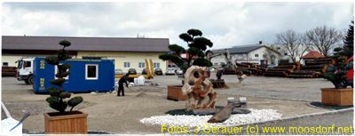 Wahr ist drittens: Der Wandel kommt wirklich, wie gestern angedeutet, aus Hackenbuch. DennTobias Wolfersberger hat sich mitten am Platz eingemietet und ist dabei, dort einen Schaugarten anzulegen: Eine Vielzahl von südländischen Gewächsen und Steinen, zum Teil aus dem Mittelmeerraum, wird es dort zu sehen geben. Sie sind als Anregungen zur Garten-und Landschaftsgestaltung gedacht. Da wird in den nächsten Wochen noch Interessantes dazukommen. Insofern wird also in Moosdorf wirklich in Zukunft der eine oder andere Garten umgegraben und verändert – nur nicht von Forschern.