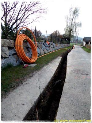 Eine Gasleitung wird verlegt. Vermutlich in Fortsetzung jener in der Michaelbeuernstraße. Anschließen will derzeit wohl nur ein Haushalt, aber falls sich jemand in den nächsten Jahren für Gas entscheidet, sollte das dann keine große Sache sein, den Anschluss zu bekommen. Einer der Arbeiter sagte , dass am Freitag voraussichtlich schon geteert wird. So kann die Mühlbach Straße eventuell schon am Wochenende wieder normal befahren werden.