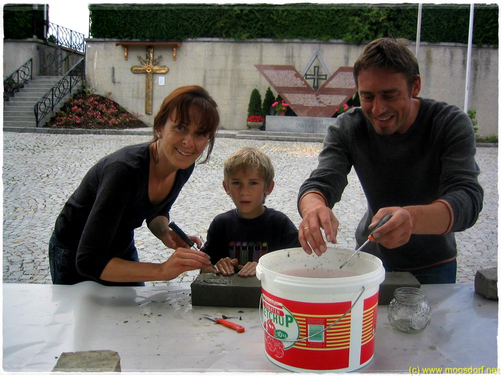 Tonziegel formen für die ganze Familie – so fing vor ein paar Jahren die Friedensmauer in Moosdorf an