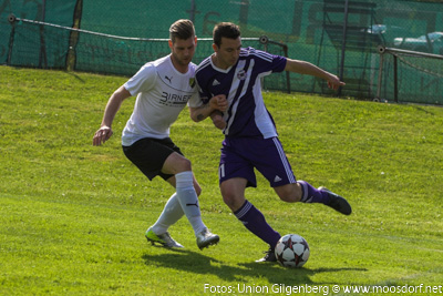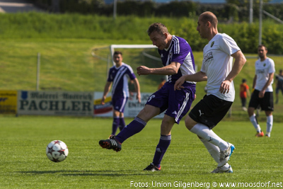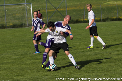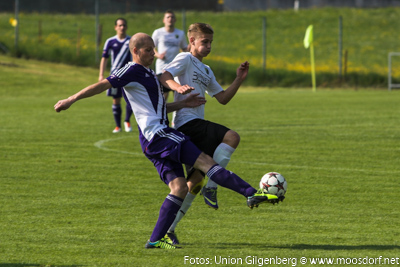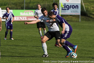 Eine tolle Kulisse von 300 Zuschauern umrahmte das spektakuläre Derby. Von der ersten Minute an zeigten beide Teams eine sehr ansprechende spielerische und kämpferische Darbietung. Wie schon des Öfteren in dieser Saison startete der USV perfekt in das Spiel. Nach einem tollen Dribbling und klasse Zuspiel vom letztwöchigen Doppeltorschützen David Renzl auf Andreas Dürager – kann dieser die schnelle und wichtige Führung erzielen. Nur wenige Minuten später konnte die Stöger-Elf eine weitere hervorragende Gelegenheit vorfinden um auf 2:0 zu erhöhen, doch genau im Gegenzug gelang den Gilgenbergern der nicht unverdiente Ausgleichstreffer. Nach einer tollen Kombination über mehrere Stationen gelangt der Ball zum freistehenden Topscorer Krasimir Georgiev und dieser lässt unseren Goalie Klaus Reschenhofer keine Chance. Der USV steckte nicht auf und spielte weiter gekonnt nach vorne um den Rückschlag wieder wett zu machen. Ein weiter Abschlag von Thomas Webersberger landet bei Andreas Dürager der spielt den Ball gedankenschnell auf Philipp Ramitsch weiter und dieser verwertet mit einem strammen Schuss. Bis zur Pause konnte sich der USV noch zwei weitere Chancen (Schüsse von Stefan Schwaiger und Thomas Mühlegger) erarbeiten, jedoch scheiterte man beide male am Schlussmann der Gilgenberger. Somit ging der USV mit einer verdienten 2:1 Führung in die Pause.