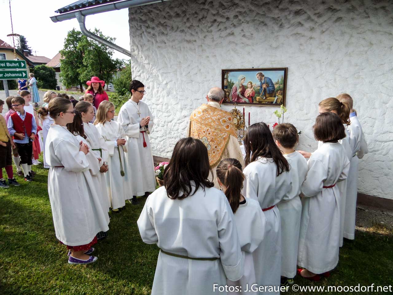 Auch der Lautsprecher ist kein Selbstläufer. Wie immer ist unseren Musikkapellen Moosdorf und Hackenbuch für das wechselnde Voranspielen besonders zu danken! Freude und Dankbarkeit werden viele empfunden haben, auf diesem kurzen Rundweg zwischen Wiesen und Feldern, bei echtem „Strahlewetter“. Die Fronleichnams-Prozession war damit wieder einmal nicht nur ein öffentliches „Glauben bekennen“, sondern auch das bewusste Gehen eines gemeinsamen Friedensweges. Danke allen, die dabei waren!