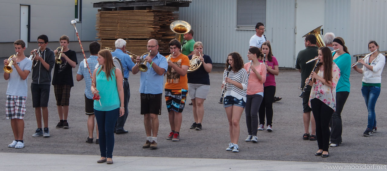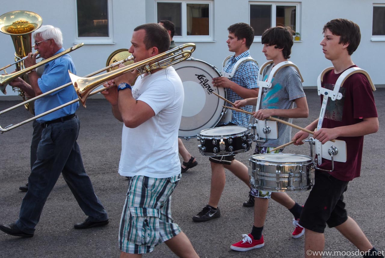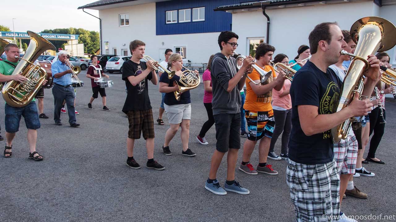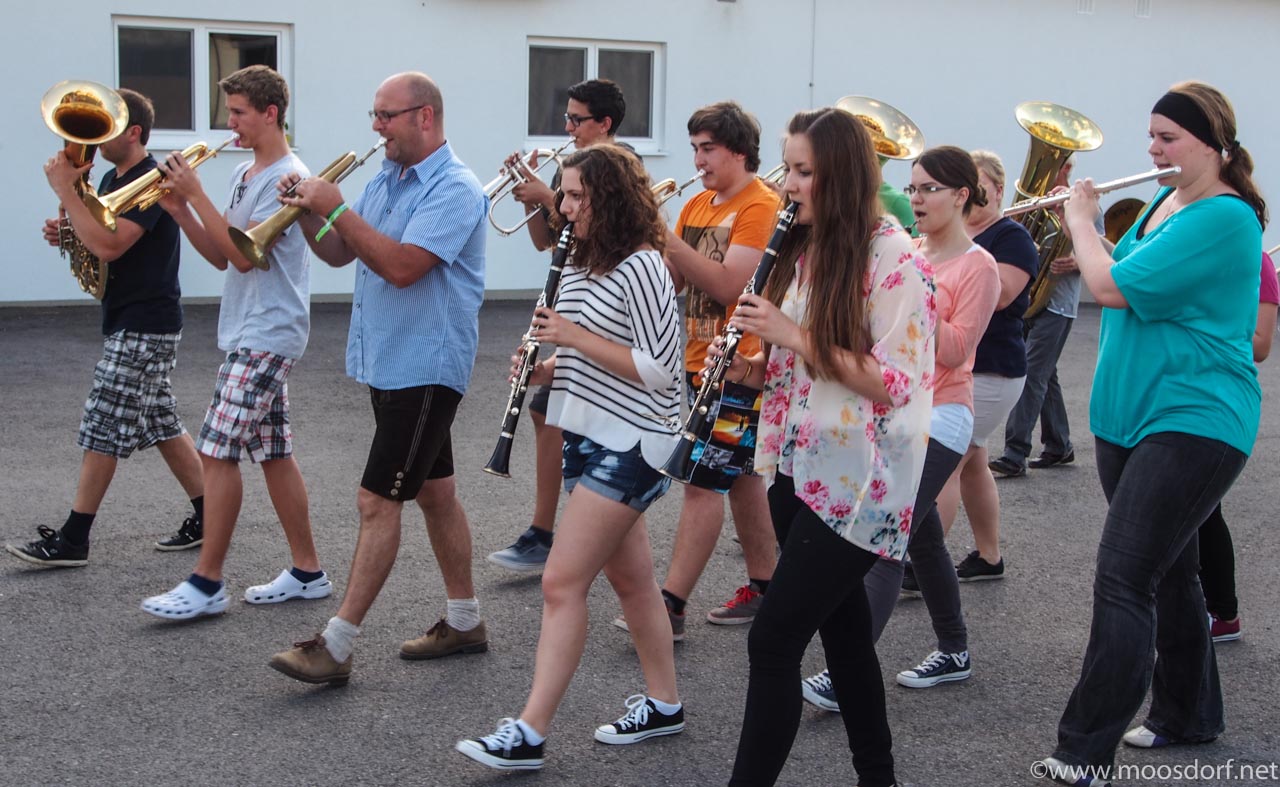 Es ist schon spannend auch mal zuzugucken, was hinter den Kulissen so eines Wertungsbewerbes bei der Musik so alles passiert. Zum Beispiel Freitag abend beim Training. Da gibt es schon allerhand Tricks, um dafür zu sorgen dass nachher alles perfekt ist. Aber ganz ehrlich: es geht nicht um´s perfekt sein. Spaß muss es machen. Und auch wenn gerade alle ganz ernst gucken, weil es ja auf einen Musik-Bewerb zugeht. Wir sind sicher: ihr tut euer bestes. Und das reicht dann auch. Wir sind froh in Moosdorf so aktive Musikerinnen und Musiker zu haben, die uns so oft mit Ihrer Musik Freude machen. Das ist das wichtigste. Und hier: ein paar Impressionen von der Marschübung… Am Sonntag um 9 Uhr ist dann Auftritt. Und die Musiker freuen sich über Besucher und Fans aus Moosdorf!