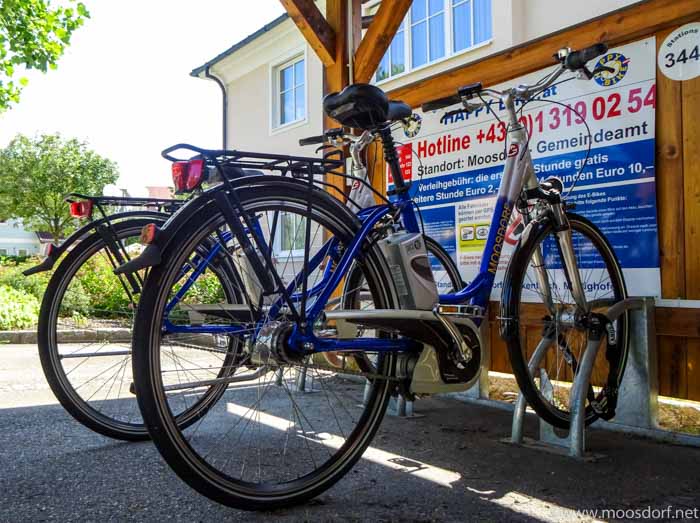um wollte ich mal daran erinnern, dass jeder Moosdorfer problemlos schon morgen ein EBike testen kann. Im Gemeindegebiet gibt es nämlich 5 Stück, die man unkompliziert mal ausleihen kann. Und das für kleines Geld: 2 Euro die Stunde. Wer länger fahren will, bekommt Sondertarife.