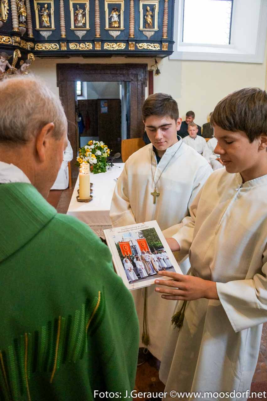 Ebenfalls unter der Leitung von Elisabeth Wolfersberger stellte sich zum „Abschied“ zusätzlich der Jugendchor Moosdorf ein. Erfreulicherweise trug dieser mit seinem hellen, frohen Gesang zum Gelingen des Festgottesdienstes bei, der übrigens ohne Wissen des Herrn Pfarrers zusammengestellt worden war und bei allen Beteiligten auch ein wenig Wehmut aufkommen ließ…