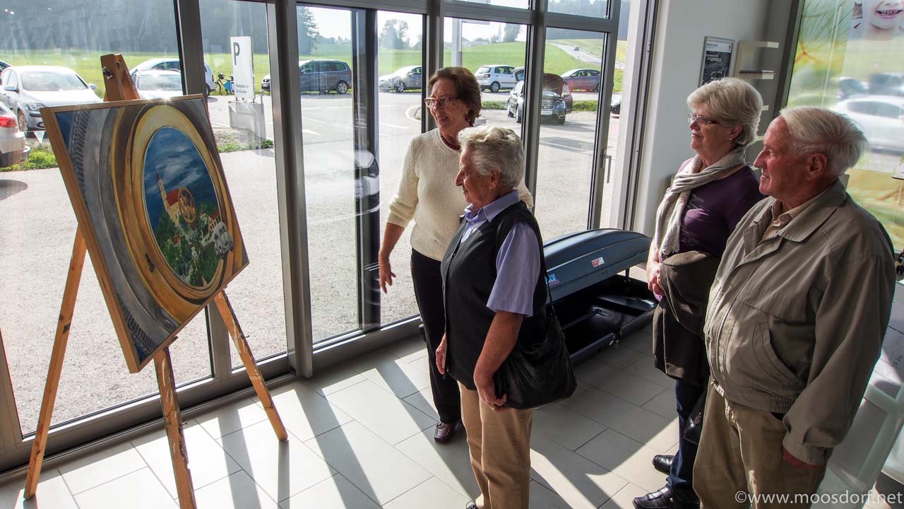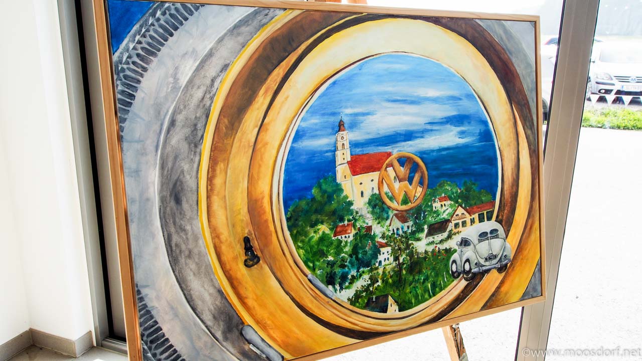Neben vielen Neuwagen und der Kunst des „Dellen“ wegmachens konnten interessierte Besucher auch noch ein wenig Kunst genießen. Die Schwester von Hubert Kainz stellte einige ihrer Werke in den Räumen des Autohauses aus.
