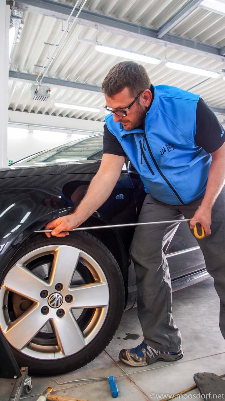 Aber es gibt auch vieles andere, was wir nicht wussten und was letztendlich die Qualität eines solchen Fachbetriebes ausmacht. „Regelmässig kommt der TÜV und schaut sich die Werkstatt an. Dazu gehört beispielsweise, dass man pro Automarke die man betreut, binnen kürzester Zeit bestimmte Spezialwerkzeuge vorlegen muss. Die müssen erstens da sein und zweitens in perfektem Zustand. Sonst gibt es Probleme…“, erzählt uns Christina Kainz bei Original VW Currywurst. Es geht aber nicht nur um drei oder vier Werkzeuge. „Pro Marke sind es siebzig Werkzeuge die nach einem Zufallsprinzip vom Prüfer ausgewählt wurden…“, ergänzt Hubert Kainz.
