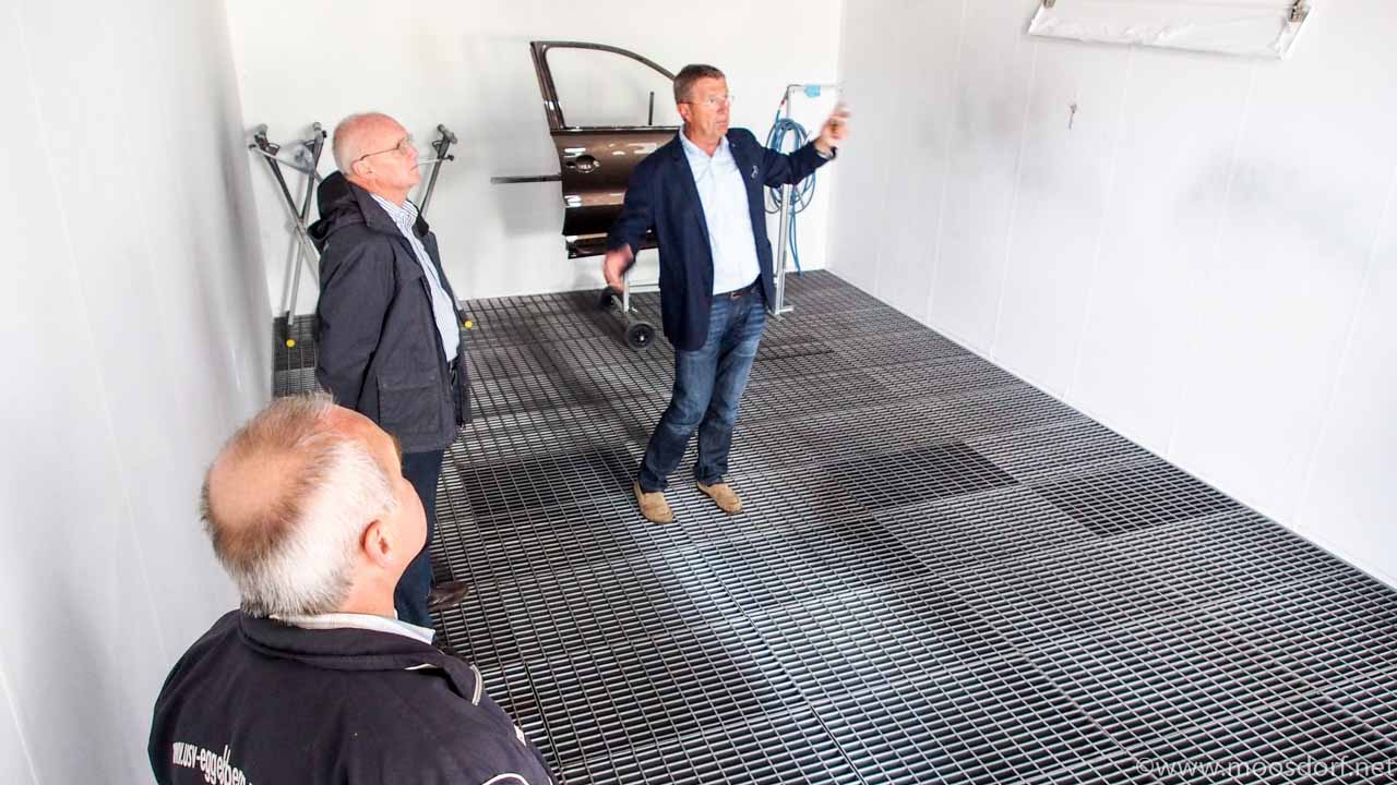 „Auf den Tropfen genau geht zum Beispiel die Mischanlage in dem System. Wenn man eine Farbe mischt und die Waage stellt fest man hat von irgendeinem Element zuviel dann verhindert sie das man einfach so weitermachen kann. Fehler nahezu ausgeschlossen,,,“, erzählen Hubert Kainz und der Lackierfachmann der Firma den erstaunten Besuchern.