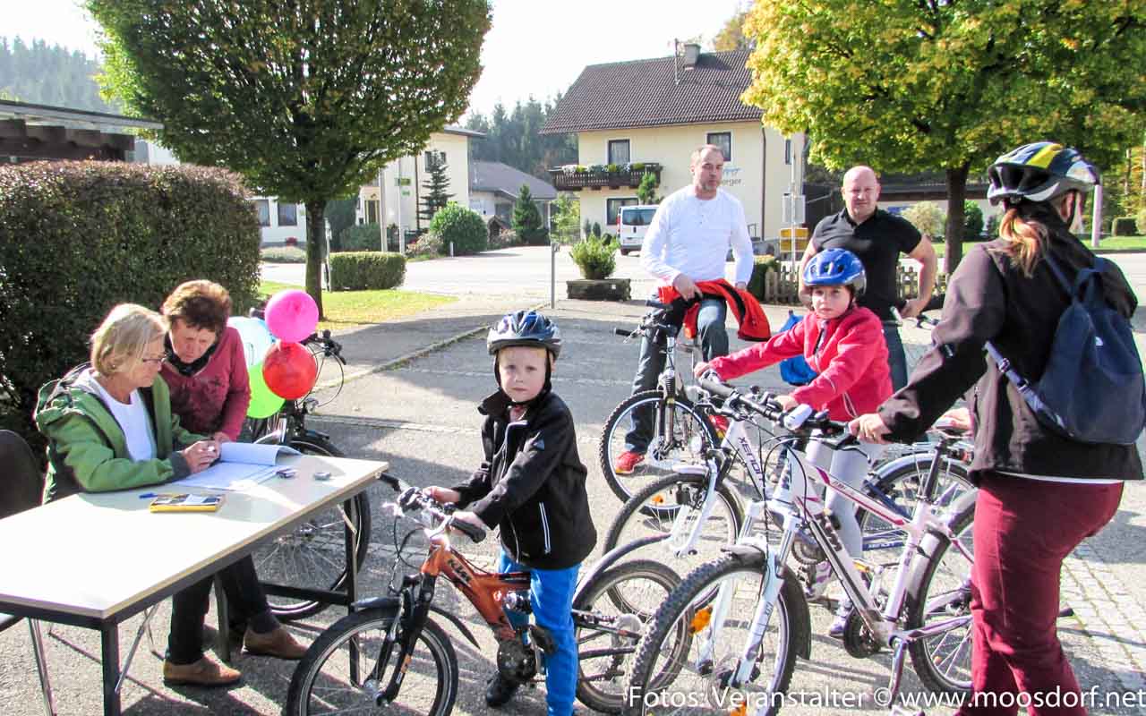 Dabei sind noch nicht mal alle, die anfingen auch bein der Abgabe der Tachos dabei gewesen. Die Abgabe des Tachostandes war von 13:15 bis 13:45 beim Gemeindeamt möglich. Von den 106 Anmeldungen gaben genau die Hälfte ihre Zahlen ab: 53 Kinder und Erwachsene… Nicht auszudenken, was an Kilometern zusammen gekommen wäre, wenn alle zeitlich geschafft hätten da zu sein…