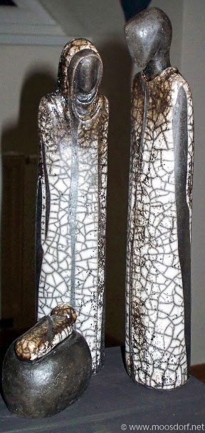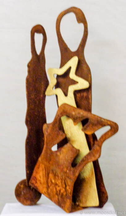 Ein in Moosdorf ebenso bekannter Metallskulpteur Siegfried Wähner erzählt auf seine unorthodoxe Art vom Ereignis , das vor rund 2000 Jahren stattfand und nimmt Bezug auf den Rost , der dieser Erzählung als Basis dient und hier eher als Stütze , und nicht als Symbol , des durch ihn Durchfallens , wie es heute den meisten ergeht.