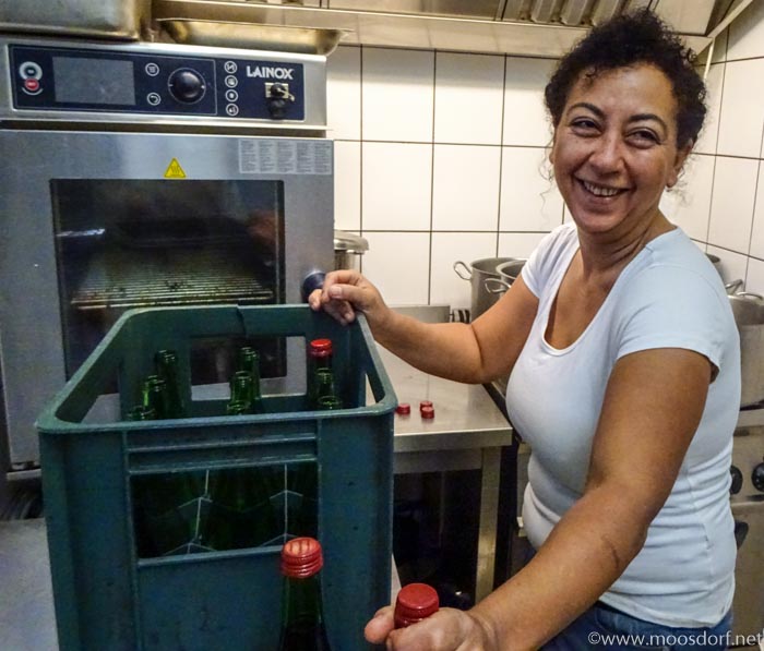 Michi – die Küchenchefin vom G´wölb – mischt schon mal den Glühwein und den Punsch. Denn der ist erstmals „hausgemacht“ – nach einem Rezept der Mama. Das ist zwar viel Arbeit, aber sie arbeitet sich tapfer durch 😉 Danke Michi!