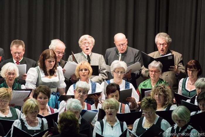 Natürlich waren viele Gäste der Liedertafel aus Mattighofen gekommen, aber die Veranstalter durften sich auch nicht nur über das so zahlreiche und aufmerksame Publikum freuen – sondern auch über unerwartet und erfreulich viele Moosdorfer Konzert-BesucherInnen. Auch unser Bürgermeister Manfred Emersberger nahm sich den Abend die Zeit, und wollte sich das Konzert nicht entgehen lassen. „Sowas hört man ja nicht so oft. Da muss man die Gelegenheit nutzen…“, sagte er uns später. Kurz: das Ganze war ein vorzeigbar gutes Beispiel von Zusammenarbeit über Gemeindegrenzen hinweg und auch darum schon ein schöner Erfolg.