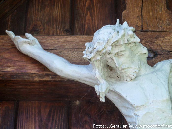 Genau weiß man’s nicht, seit wann hier an der alten Straße von Moosdorf nach Feldkirchen ein Kreuz steht. Ist auch nicht so wichtig. Hauptsache und lobenswert ist: Es kümmert sich in unseren Tagen noch jemand um solche Klein-Denkmäler zwischen den Fluren und im Gedränge des Alltags.