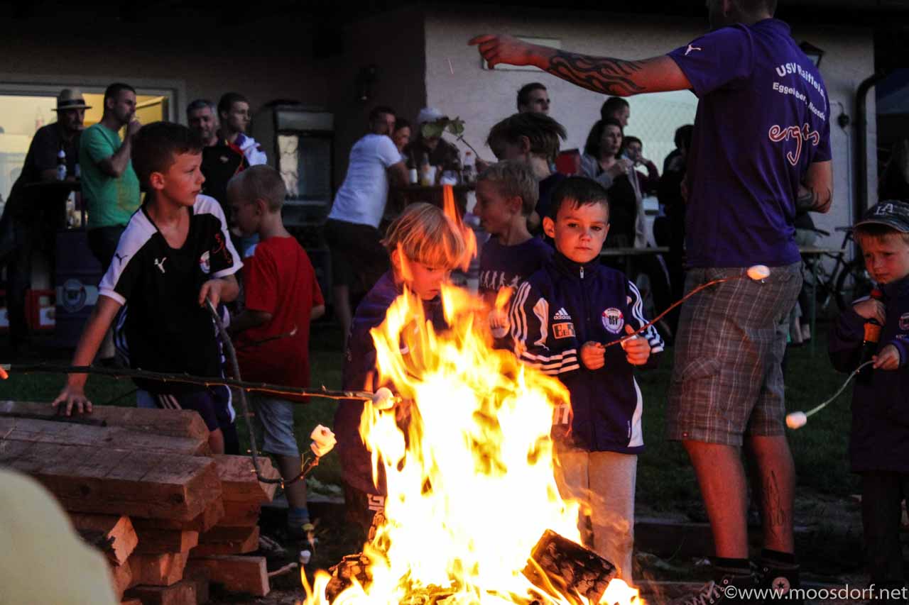 Nach diesen abwechslungsreichen Stunden wurde bei Dämmerungseinbruch noch ein kleines Lagerfeuer gemacht – wo Eltern, Kinder und Trainer noch gemütlich Marshmallow’s und Würstchen verzehrten. Danach war Zeltruhe angesagt. Am frühen Morgen bevor die Kinder wieder von den Eltern abgeholt wurden, stärkte man sich noch mit Brot, Nutella und Kakao.