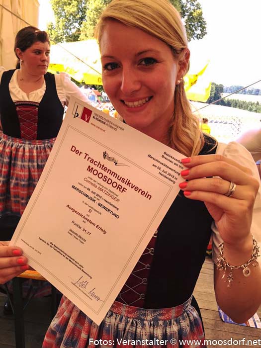 Zum 2. Mal in Folge konnte unter der Leitung von Cornelia Matzinger ein „Ausgezeichneter Erfolg“ in der Leistungsstufe „D“ entgegengenommen werden „Ich bin so wahnsinnig stolz auf uns alle, auch ein paar Freudentränen waren nicht aufzuhalten. Außerdem war es echt toll, Moosdorferinnen und Moosdorfer im Publikum in Handenberg zu sehen, das motiviert einfach ungemein und machte mich auch sehr glücklich“ – so Cornelia Matzinger.