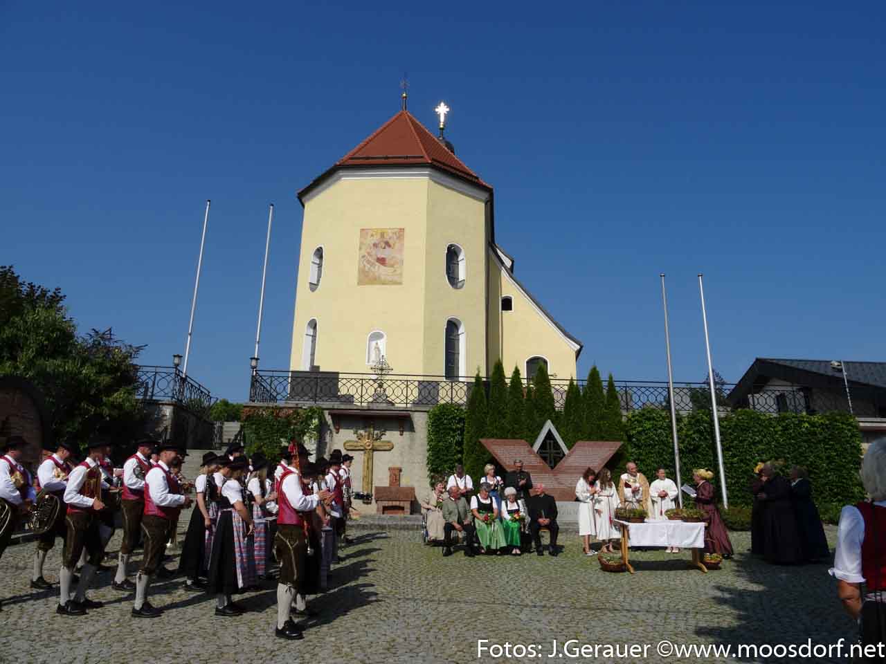 In guter Tradition werden in Moosdorf am „Tag der Tracht“ Hochzeitsjubilare in den Mittelpunkt gerückt. Nach partnerschaftlicher Verlässlichkeit auf unterschiedlich langem gemeinsamen Weg erwiesen sie sich an diesem Sonntag am Kirchenplatz auch als hitzebeständig !