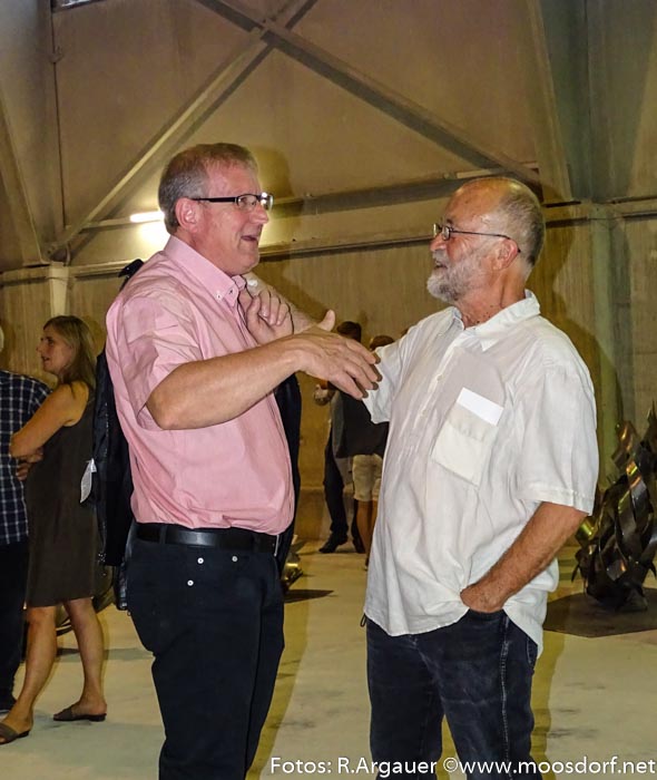 Die meisten von ihnen stammen aus Österreich, andere kommen aus Deutschland und Italien. Manche von ihnen wirkten schon mehrmals beim Stahlsymposium mit, es waren aber auch überraschend viele neue und junge Gesichter unter ihnen. Einer, der bereits zum fünften Mal dabei war, ist „unser“ Moosdorfer Künstler Siegfried Wähner. Sein Werk fand auch heuer wieder großen Gefallen beim Publikum, natürlich auch bei unserem Bürgermeister, Manfred Emersberger.