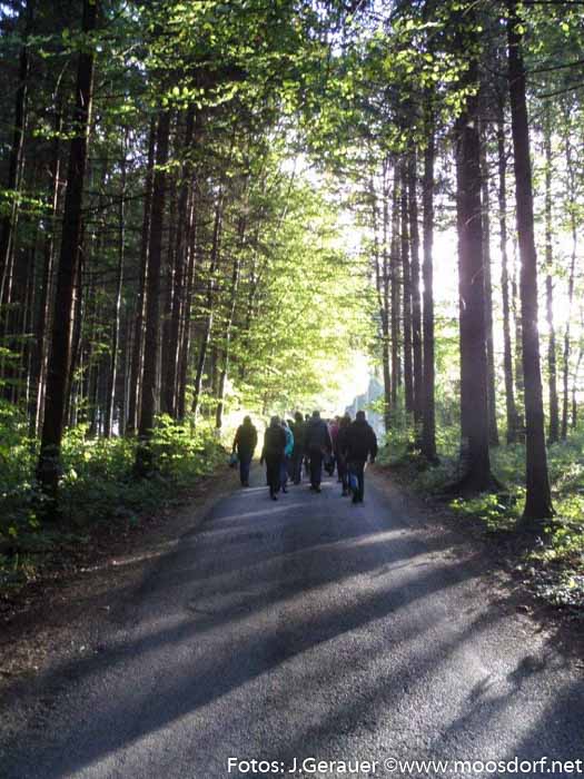 Eine kleine Gruppe Unermüdlicher macht sich zu Fuß auf den Rückweg. Viele verstehen „Wall-Fahrt“ eher wörtlich: Sie kehren –nach gemütlicher Einkehr in Feldkirchen – mit dem Fahrzeug nach Moosdorf zurück.