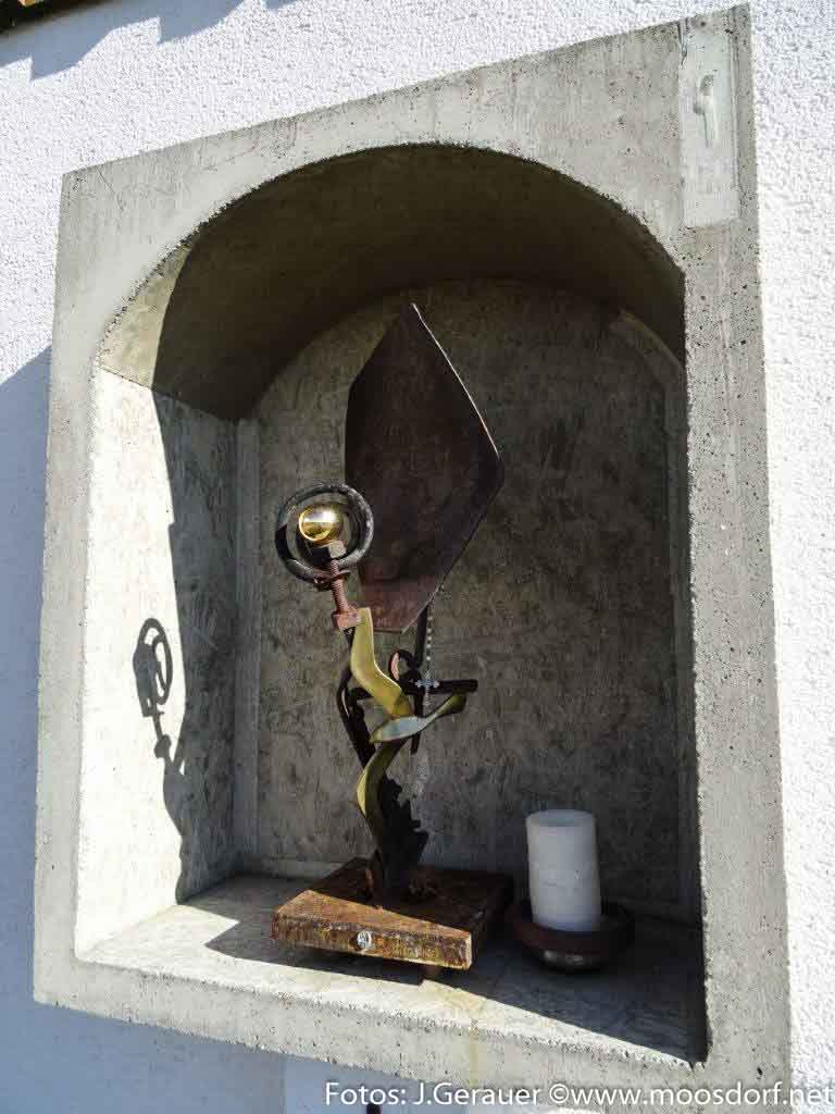 Einer der jüngsten Bildstöcke in Moosdorf ist gewiss der vom „Waldlbauer“, von der Familie Webersberger in Jedendorf. Erst 2012 wurde diese Skulptur vom in Moosdorf schaffenden Künstler Siegfried Wähner gestaltet, modern und zeitlos, jedenfalls unkonventionell!