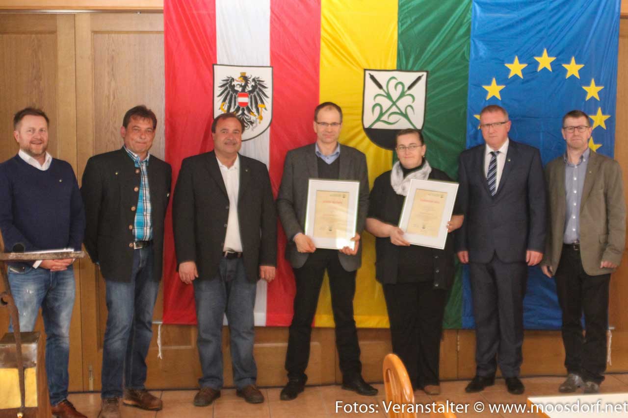 Bei der Versammlung wurden natürlich Pläne für die Gemeinde vorgestellt und auch über die Kunstwerke im Kindergarten berichtet, die diesmal erfreulicherweise von drei Moosdorfer Künstlern kommen. Außerdem wurden die Obfrauen und Obmänner der Ausschüsse in der Gemeinde der Bevölkerung vorgestellt. Aber natürlich war ein ganz besonders wichtiger Punkt das Thema Ehrungen. Amtsleiter Thomas Österbauer sandte uns dazu Informationen zu.