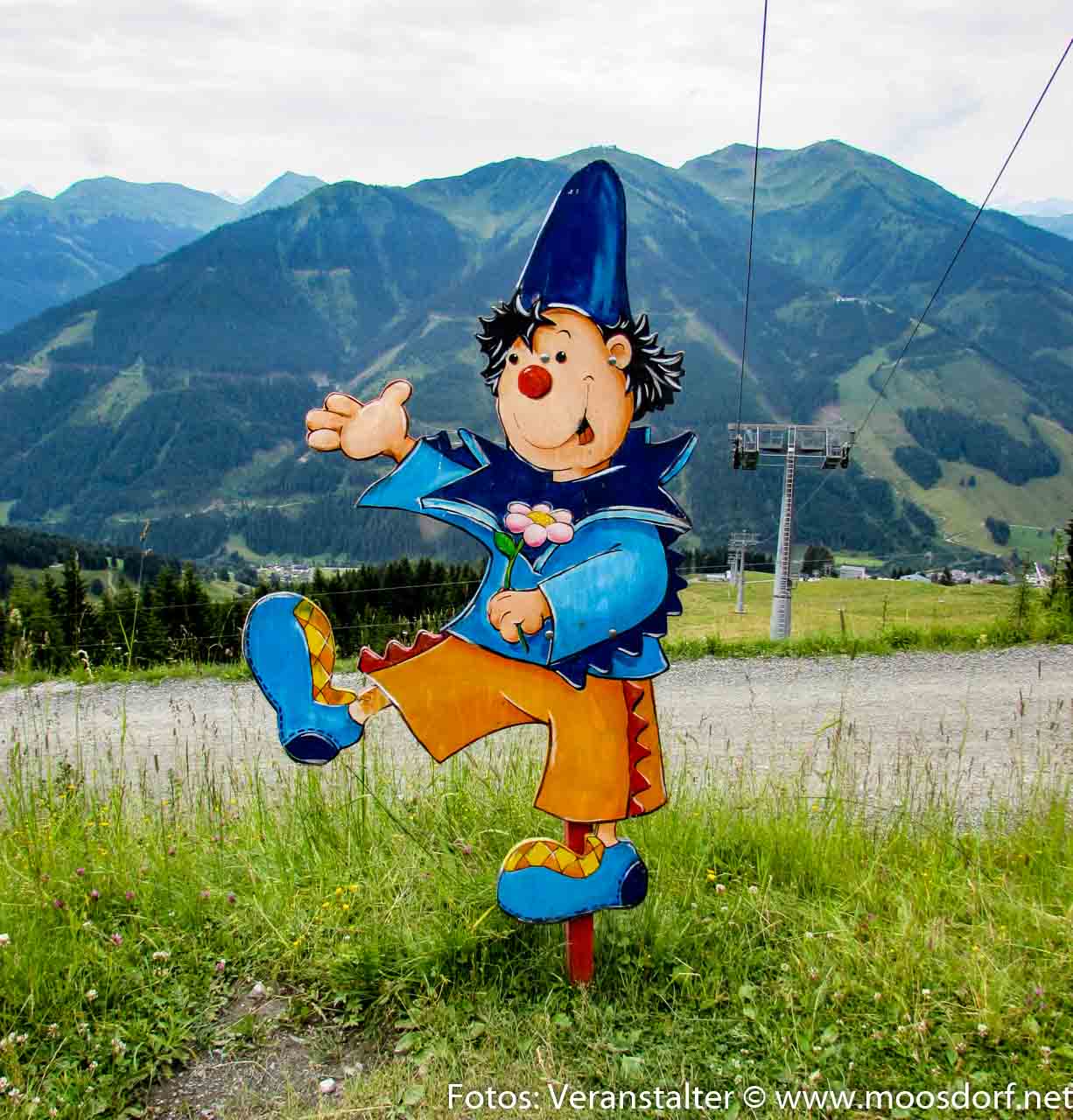 Um 8 Uhr holte uns der Bus ab und wir fuhren nach Saalbach-Hinterglemm, wo uns die Seilbahn dann zum Kohlmais und seinen Abenteuern brachte. Jedes Kind erhielt an der Talstation einen Stickerpass, der am Berg dann an den verschiedenen Stationen mit den richtigen Stickern beklebt wurde. Diese Rätsel waren nicht nur für die Kleinen schwer zu verstehen ;-). Auch so mancher Erwachsener kam ins „Schwitzen“.