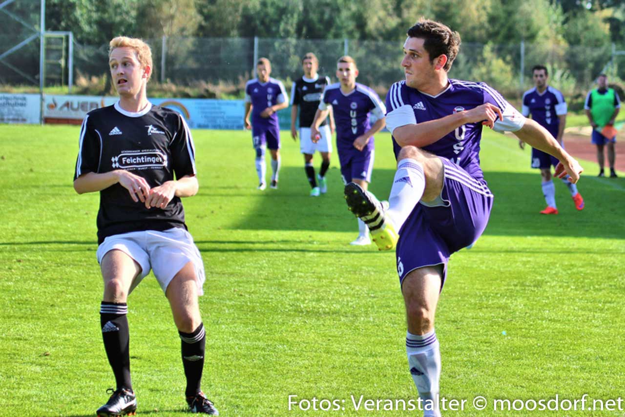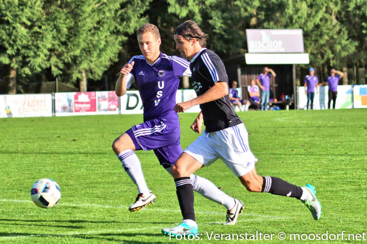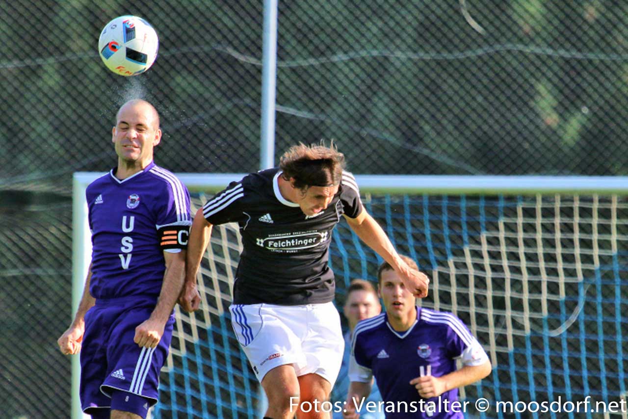 Von Beginn an entwickelte sich eine ausgeglichene Partie mit Chancen auf beiden Seiten. Zuerst verzeichneten die Heimischen die erste Torchance. Josef Hamouz setzt mit einen Lochpass Daniel Vanek in Szene, doch sein Abschluss aus spitzen Winkel geht knapp am Tor vorbei. Danach probiert’s der USV. Martin Lindner mit einem starken Vorstoß über die linke Seite und einen satten Schuss aus 25 Meter. Dieser wird aber noch leicht abgefälscht und zur Ecke geklärt – die dann leider nichts einbringt. Danach etwas Leerlauf im Spiel und Standardsituationen prägen das Geschehen. Michael Kothbauer mit einer guten Freistoßmöglichkeit aus 20 Meter, sein gut angetragener Schuss landet knapp über den Querbalken. Beide Teams probieren es in den letzten 15 Minuten mit Distanzschüssen, die aber zu ungenau geschossen sind und die Torhüter nicht vor größere Probleme stellen. Somit geht es mit einem leistungsgerechten 0:0 in die Halbzeitpause.