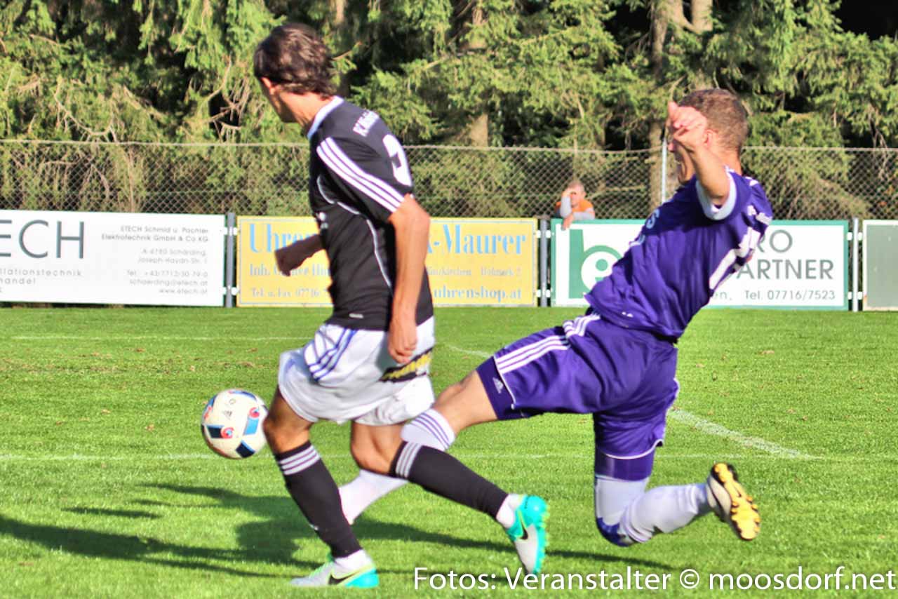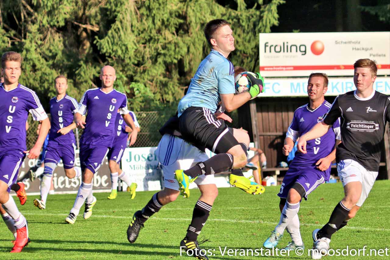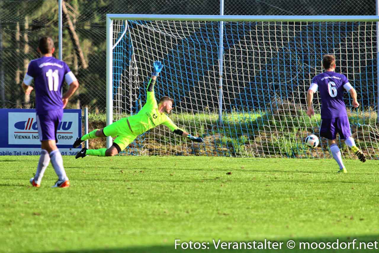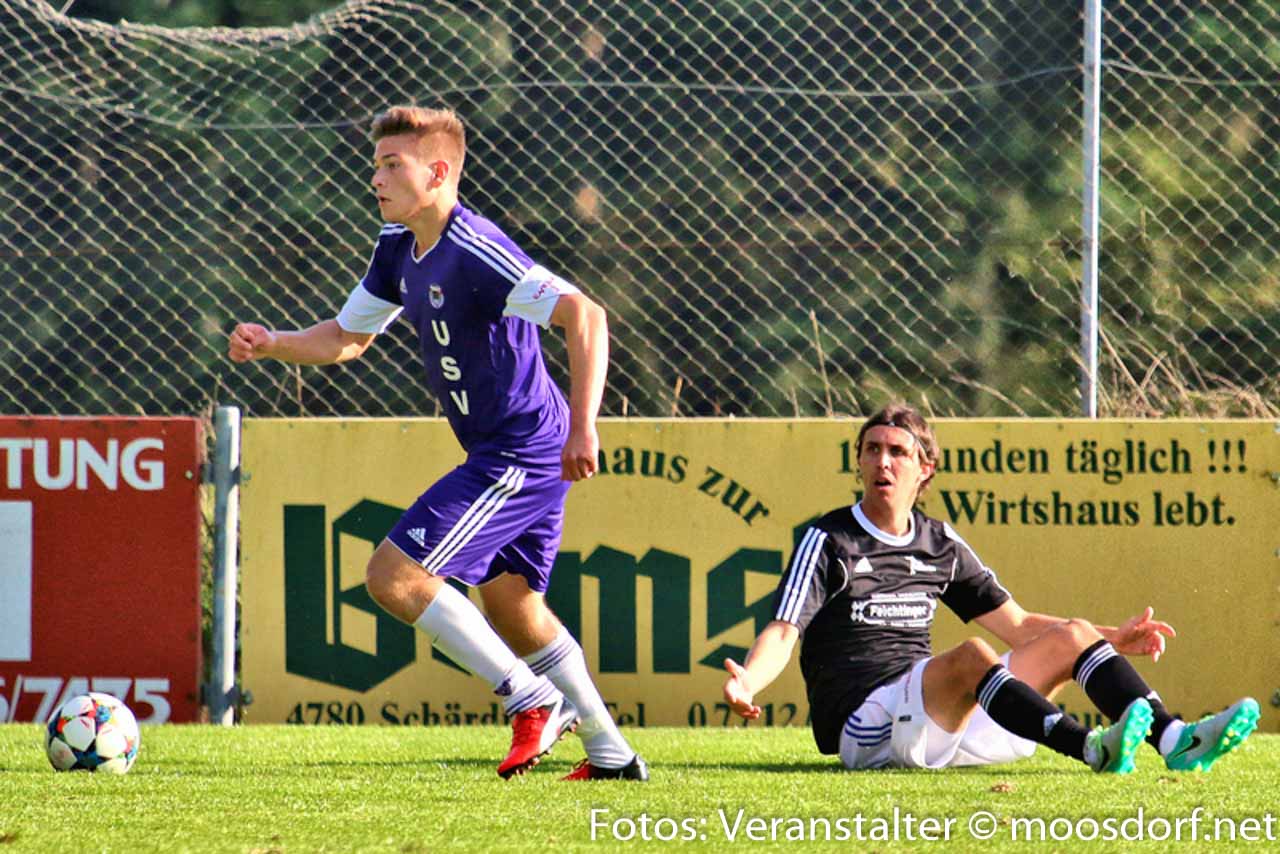 Von Beginn an entwickelte sich eine ausgeglichene Partie mit Chancen auf beiden Seiten. Zuerst verzeichneten die Heimischen die erste Torchance. Josef Hamouz setzt mit einen Lochpass Daniel Vanek in Szene, doch sein Abschluss aus spitzen Winkel geht knapp am Tor vorbei. Danach probiert’s der USV. Martin Lindner mit einem starken Vorstoß über die linke Seite und einen satten Schuss aus 25 Meter. Dieser wird aber noch leicht abgefälscht und zur Ecke geklärt – die dann leider nichts einbringt. Danach etwas Leerlauf im Spiel und Standardsituationen prägen das Geschehen. Michael Kothbauer mit einer guten Freistoßmöglichkeit aus 20 Meter, sein gut angetragener Schuss landet knapp über den Querbalken. Beide Teams probieren es in den letzten 15 Minuten mit Distanzschüssen, die aber zu ungenau geschossen sind und die Torhüter nicht vor größere Probleme stellen. Somit geht es mit einem leistungsgerechten 0:0 in die Halbzeitpause.
