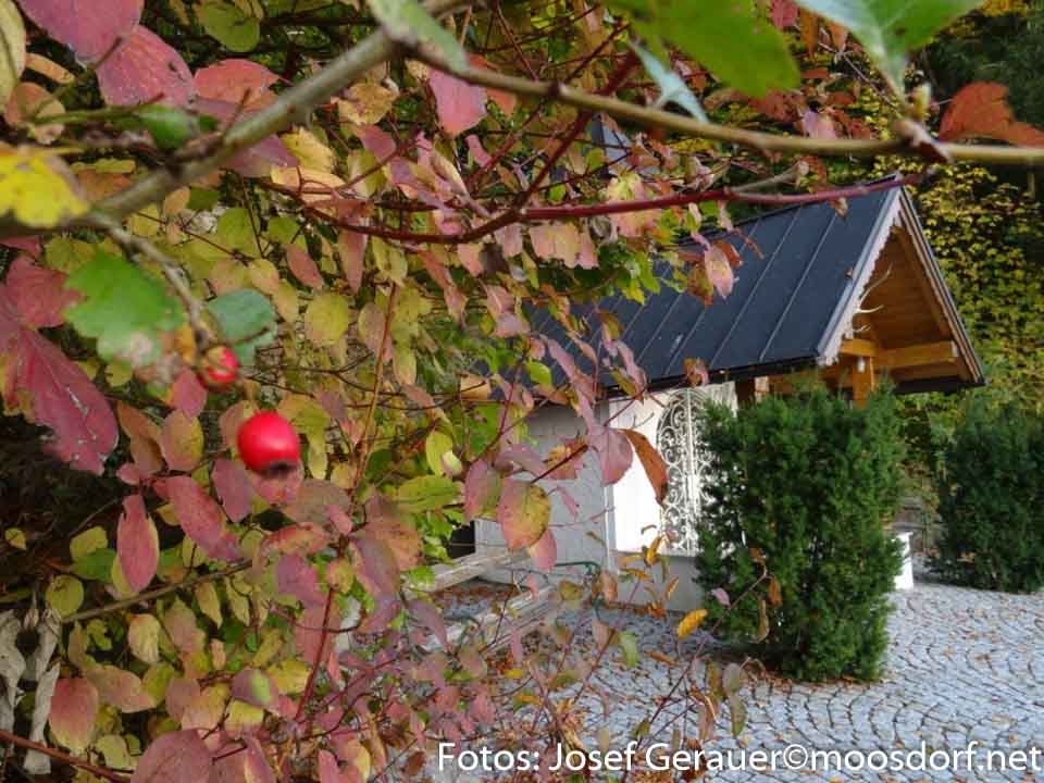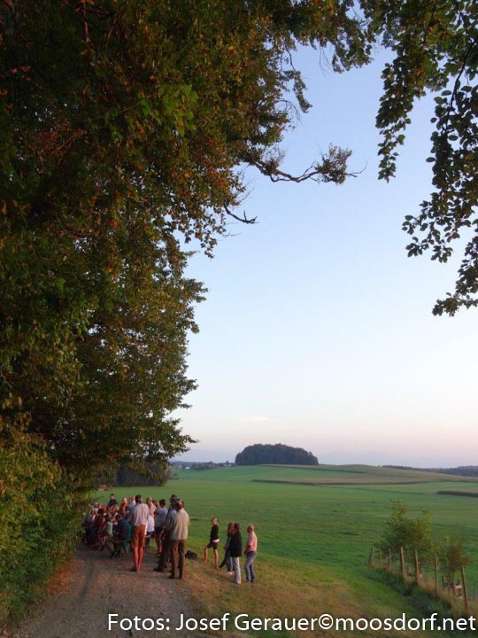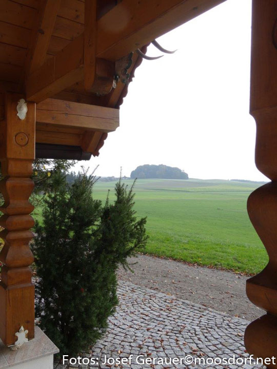 Eine Gedenktafel im Inneren der Kapelle erinnert an verstorbene Jagdkameraden, geschmackvoll fällt die gesamte Ausgestaltung und das gepflegte Umfeld auf. Wer sich zum Gehen wendet, der spürt vielleicht dankbar: Mit dieser Kapelle haben die Jäger Moosdorfs eine kleine, aber bemerkenswerte Pilgerstätte geschaffen. Sie lädt ein, innezuhalten, zu meditieren, zu sich zu kommen, die Gedanken nach oben und den Blick in die Weite des Ibmer Moores zu entlassen.