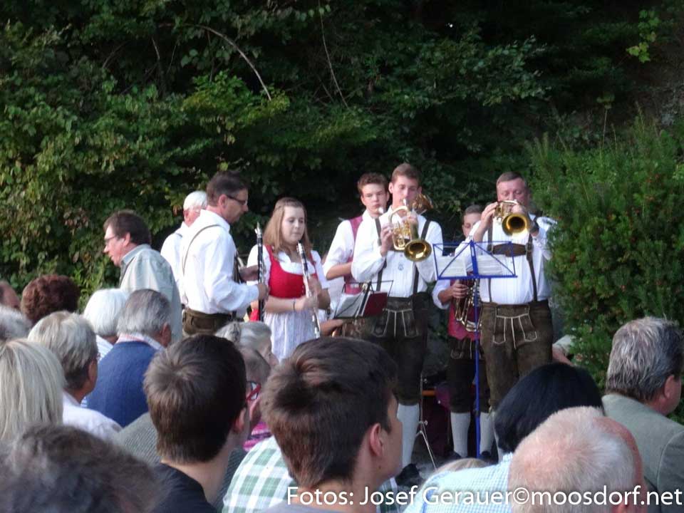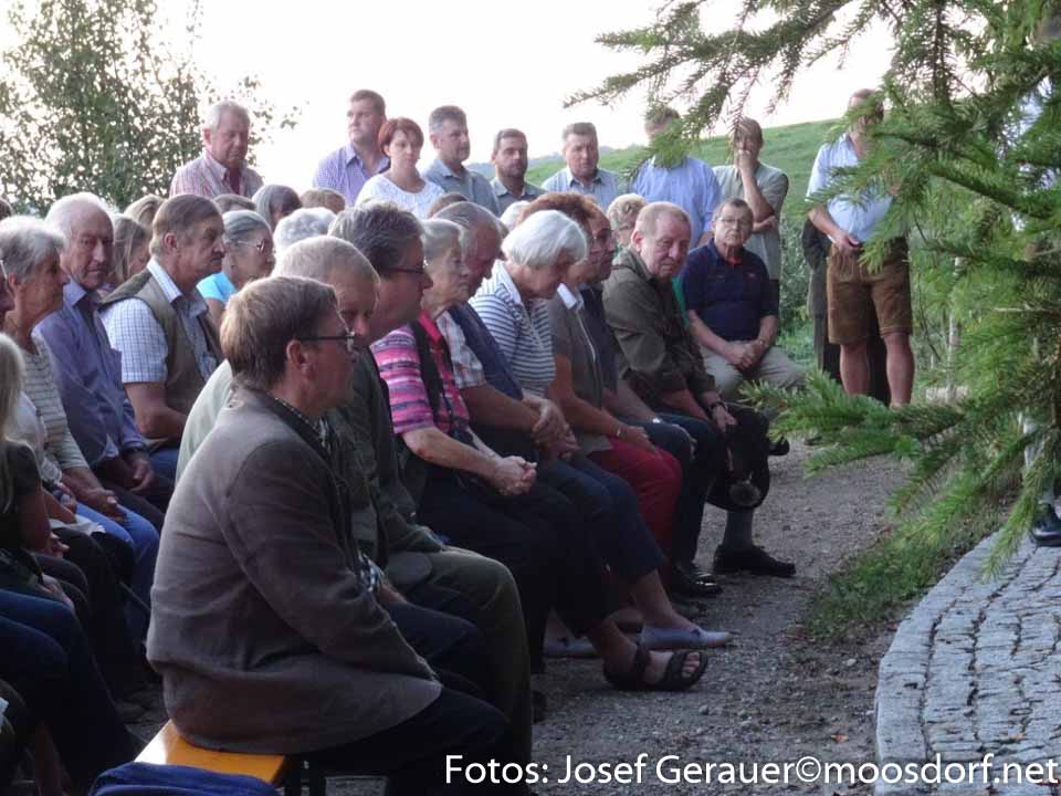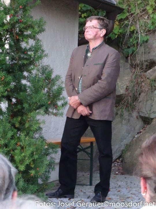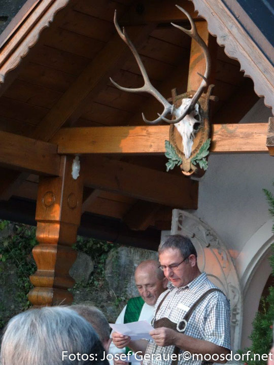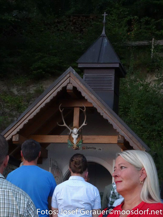 Jährlich am zweiten Wochenende im September wird hier eine Hubertus-Messe gefeiert. Eine große Schar von Einheimischen und JagdkameradInnen aus anderen Revieren lauschten auch heuer den Worten von Kurat Ferdinand Oberndorfer, den Lesungen von Helmut Renzl (Jagdl.-Stellvertreter) den Klängen der Jagdbläser und einer Bläsergruppe der Musikkapelle Moosdorf. Jagdleiter Josef Hochradl dankte abschließend u.a. auch der Fam. Peer, die den Grund für diese Kapelle pachtmäßig zur Verfügung stellt.