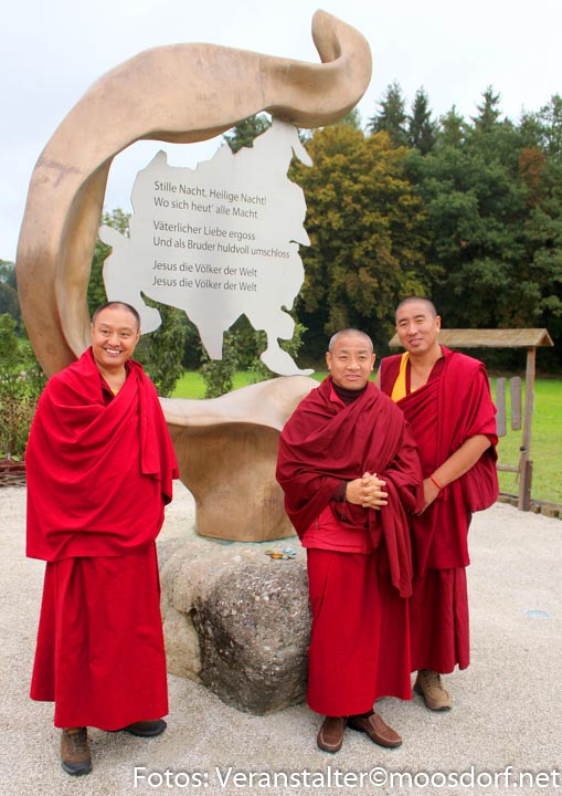 „Friede ensteht im Kopf jedes einzelnen Menschen“ – davon sind drei tibetische Mönche, die auf Einladung des Friedensdialoges in Moosdorf Station machten, fest überzeugt. Zwei Tage waren sie bei uns unterwegs und haben nicht nur geduldig viele Fragen über ihr Leben und ihre Kultur beantwortet, sondern auch einen Eindruck von unserer Heimat bekommen …
