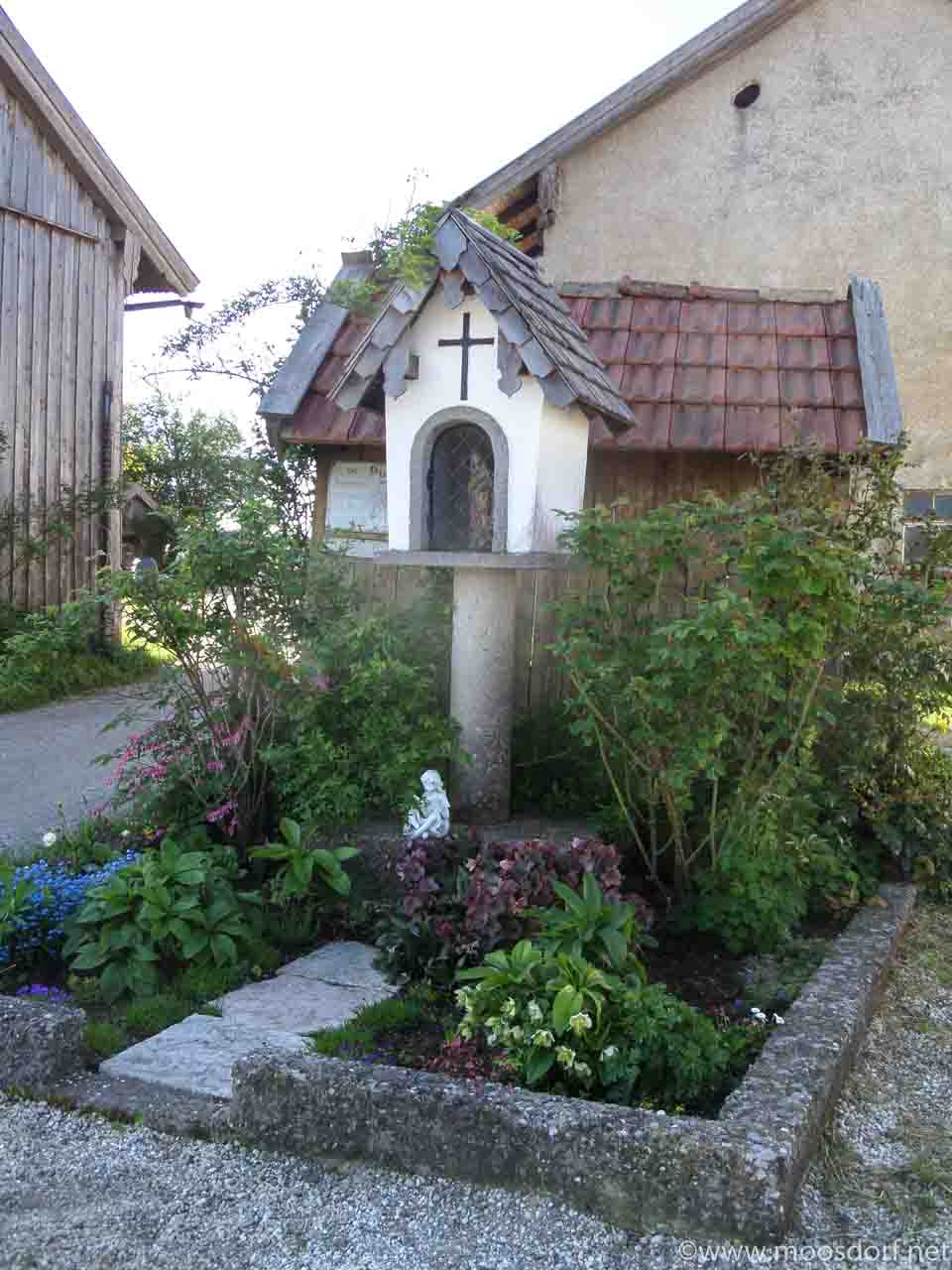 Hier in Puttenhausen beim „Gratzbauern“ stand einst ein Holzkreuz. Nachdem es bei einem Unwetter stark beschädigt wurde, haben die Hofbesitzer 1974 diesen Bildstock errichtet. Als zum fleißigen Roman Paischer seine Karin auf den Hof kam, war es eines ihrer ersten Anliegen, 2009 diesen Bildstock aus seinem „Dornröschen-Schlaf“ zu wecken und ihn mit viel Geschick und feinem Gespür zu restaurieren. Zwar ruht der Bildstock eher unscheinbar meist im Schatten des Hofes, aber wer genau hinschaut, kann es nicht übersehen: So ist es, wenn ein guter Engel sein Buch des Wohlwollens aufschlägt, über die Familie wacht und seine bereichernde Wirkung entfaltet!