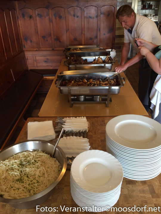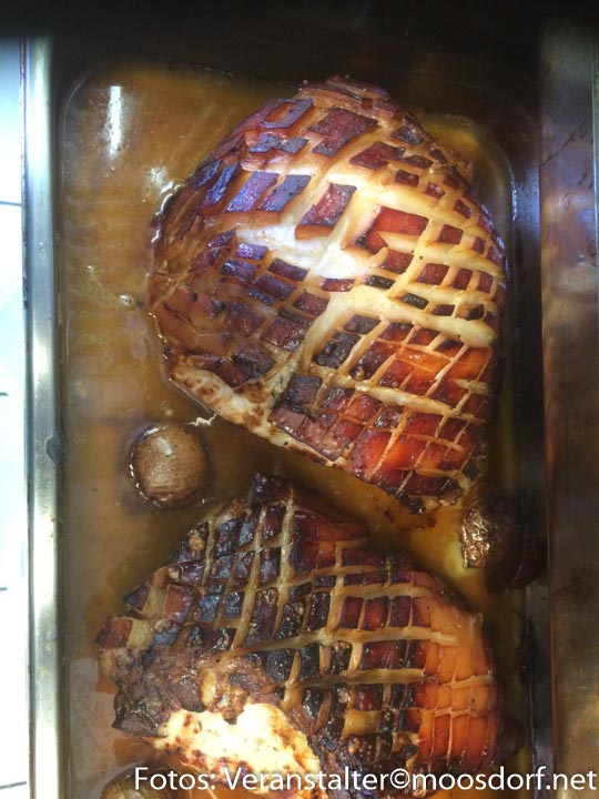 Nachdem es bei der Metzgerei Locher dann geschlachtet und zerlegt wurde nutzte der Wirt gleich die Gelegenheit zu einer Doppelveranstaltung. Zuerst gab es Mittag ein deftiges Reindl-Sau-Essen mit allem was das Herz begehrt: Schweineschopf, Stelzen, Surbraten, Bauchfleisch, Ripperl. Und Abends beim Hans´n Treffen gab es dann noch Krenfleisch von der Schulter und Bauch.