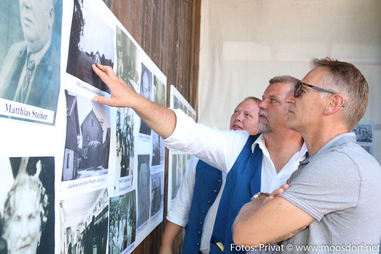 Nach der Begrüßung der Ehrengäste, Vereine und der Bevölkerung Hackenbuchs durch ARGE KULTUR Obmann Ludwig Wolfersberger, sprach Bürgermeister Manfred Emersberger der Familie Leopolder seinen Dank aus. Er erinnerte daran dass eine Erweiterung des Ortes nur durch Grundverkauf der Familie Steiner – Leopolder möglich war. Aber auch Straßenerweiterungen, die Dorfplatzerrichtung und vieles mehr konnten durch die gute Zusammenarbeit zwischen der Familie Leopolder und der Gemeinde Moosdorf positiv für alle abgeschlossen werden. Bürgermeister Manfred Emersberger würdigte aber auch das Engagement der ganzen Familie für den Ort und die Vereine. (Restaurierung der alten Feuerwehrfahne, Kauf einer neuen Glocke für die Kapelle, kostenlose zur Verfügung Stellung der Räumlichkeiten für das Heimat und Moormuseum sowie Mitgliedschaft und tatkräftige Mithilfe bei vielen Vereinen.)