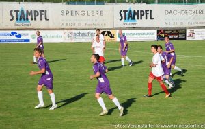 Die ersten Minuten des Spiels ließen die 650 Zuschauer auf eine flotte und abwechslungsreiche Partie hoffen. Der USV Eggelsberg Moosdorf war gleich nach Anstoß im Strafraum der Heimischen gefährlich. Lorenz Webersberger setzte sich auf der linken Seite mit viel Tempo durch und flankt scharf in den Strafraum, wo unser Stürmer Richard Schmidsberger das Leder nur ganz knapp verfehlte. Das sollte es aber schon gewesen sein mit Torchancen auf beiden Seiten.