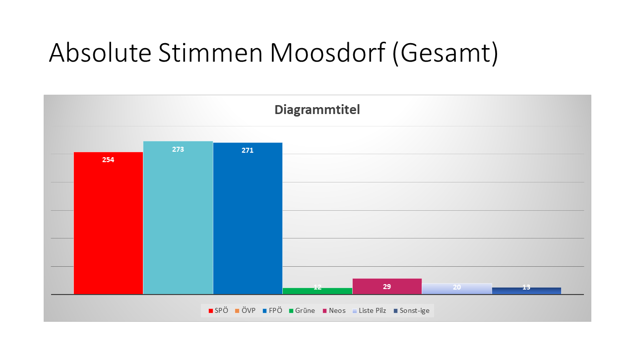 „Werden sich nach den Wahlkarten-Auszählungen die Moosdorfer Werte nochmals verändern?“ Diese Frage wurde uns in den letzten Stunden oft gestellt. Die Antwort ist: Nein. Die Wahlkarten werden im Nachgang nicht mehr der Gemeinde zugeschlagen, weil das auch durch das Wahlgeheimnis gar nicht möglich wäre. Das heißt: die Ergebnisse aus Moosdorf sind die, die direkt beim Urnengang entstanden sind und bleiben. Das gilt auch für die Vergleichswerte der Nachbargemeinden die wir ausgesucht haben.