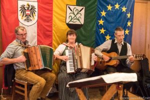 „Musikalisch haben wir uns diesmal für den Tag der Älteren Generation was rustikaleres überlegt, mehr ländlich…“ stellte Bürgermeister Manfred Emersberger die Musik vor. Und die hatte nicht nur schöne rein akkustische Instrumente dabei, die ganz ohne elektronische Verstärkung den Raum wunderbar füllten, sondern auch eine ganze Reihe äußerst amüsanter Lieder, denen alle gerne zuhörten. Ob es nun die Geschichte eines etwas kuriosen und verrückten Froschpärchens war, dass in der Nähe von Moosdorf seinem Treiben nachgegangen ist oder auch andere den meisten unbekannte aber amüsante Texte: die Musik hielt, was der Bürgermeister versprach. Unterhaltsam, angenehm und abwechslungsreich.
