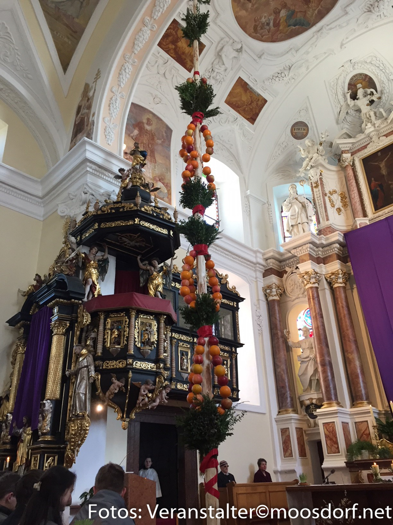 Auch heuer hat sich unsere Landjugend wieder mit dem Binden des Palmbaums übertroffen. Ganze 7,5 Meter war er hoch. Und geschmückt mit 115 Stück Obst. Am Palmsonntag war es dann soweit: der Palmbaum wurde in der Kirche geweiht. Sandra Schmidlechner hat uns einen kleinen Bericht und Fotos dazu geschickt.