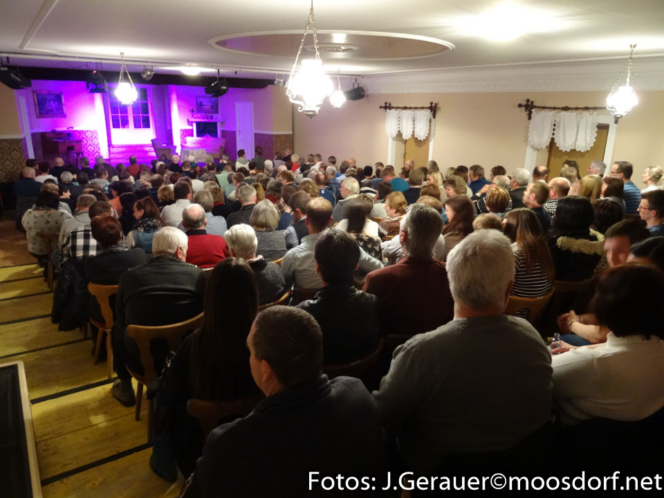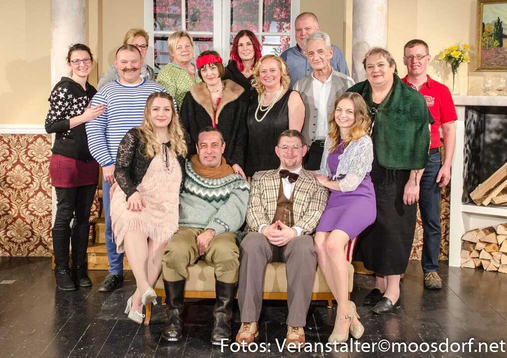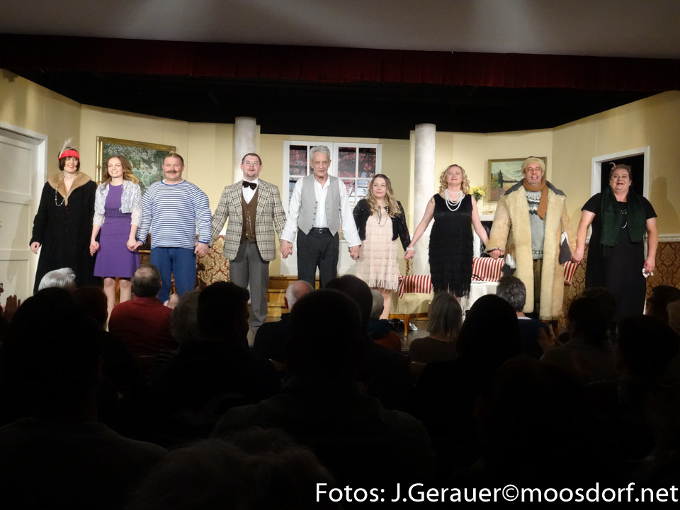 Claudia Sporrer (geschmackvolle, gut ausgesuchte Maske), Margret Tress und Bianca Huber (verlässliche Regieassistenz) und Willi Webersberger und Franz Gruber (schöne, funktionelle Bühne und moment-genau funktionierende Technik) und weitere Unterstützende! Dem fleißigen Obmann Willi Webersberger darf man neuerlich gratulieren zu großartigen Einzel- und der gesamten Team-Leistung der Theatergruppe Moosdorf auch im 41. Bestandsjahr 2018!