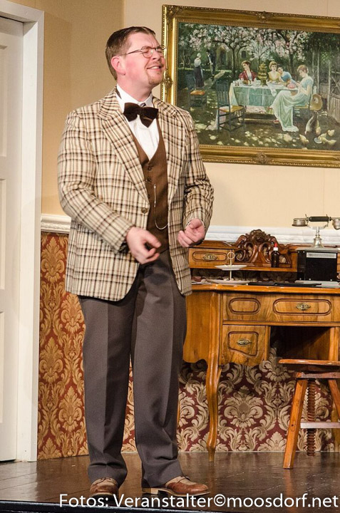 Michael Webersberger als zielstrebig-redseliger Bräutigam Albert Leroi, selbsternannter Direktor, bewältigt vor allem im ersten Teil ein gewaltiges Redepensum, in dem er seinen Dienstgeber so niederredet, dass dem alles recht wird. Diese Textfülle wird von Webersberger in enormem Redetempo, aber total gut verständlich und rollengerecht bewältigt! Er erweist sich heuer auch als Paradebeispiel für das darstellerische Wachsen eines Spielbegeisterten von Nebenrollen früherer Jahre zur großen Rolle heuer!