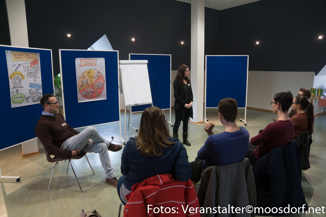 Wir haben Bewertungen abgegeben, wie wir das in Moosdorf sehen und darüber mit Roman Zebisch (SPES Zukunftsakademie) gesprochen. Auf kleine Kärtchen haben wir Ideen zusammengefasst, die wir in Moosdorf umsetzen möchten und dann in der Gruppe diskutiert. Verköstigt wurden wir mit einem Buffet der Familie Fuchs aus Einsperg.
