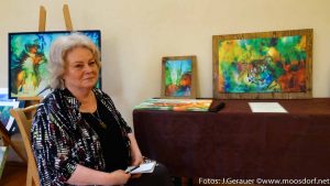 Hanna Scheriau ist mit Ihrer besonderen Form des Malens dabei gewesen – bei der vielfach ausgezeichneten Künstlerin geht es immer sehr intensiv um das Spiel der Farben, mit dem sie Dinge „beschreibt“. Außerdem produziert sie regelmässig für den Friedensdialog ein Themen-Plakat.