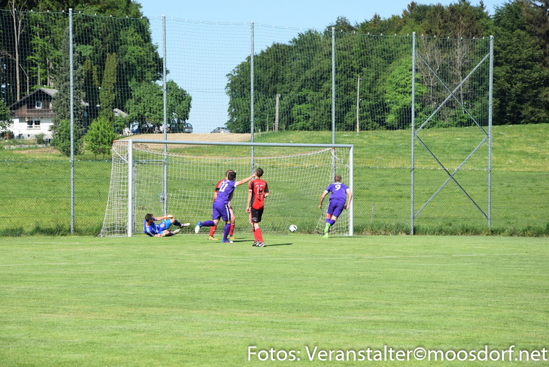 Gleiches Bild in Halbzeit zwei. Beide Mannschaften tasteten sich wieder etwas ab und der USV Eggelsberg Moosdorf erzielte abermals einen frühen Treffer. Nach etwas mehr als 50 Minuten flankt der bärenstarke Maximilian Schönhofer nach toller Einzelleistung den Ball gefühlvoll in den Strafraum. Dort wo Gergö Nagy zu Fall gebracht wurde und der Unparteiische Markus Wimmer auf den Elfmeterpunkt zeigte. Der Gefoulte trat selbst an und verwandelte ganz souverän ins linke Eck zur wichtigen 2:0 Führung. Der USV Eggelsberg Moosdorf verlegte sich nun etwas auf das Konterspiel und hätte in der 70. Minute den Sack zumachen können, jedoch scheiterte Maximilian Schönhofer am stark reagierenden Schlussmann der Gäste.