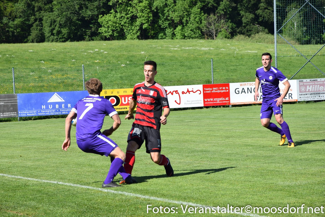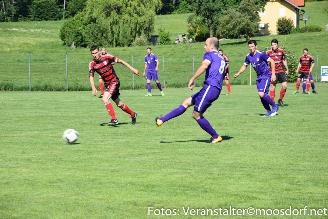 Beide Mannschaften tasteten sich zu Beginn etwas ab. Der USV fand anschließend mit jeder Minute besser ins Spiel und belohnte sich nach 10 Minuten schließlich mit dem Führungstreffer. Andreas Dürager setzte Verteidiger Samuel Reiter stark unter Druck und erzwang den Ballgewinn. Er bewies anschließend viel Übersicht mit einer präzisen Flanke zu Gergö Nagy, der im Strafraum aus wenigen Metern mit den Kopf zur Führung trifft. Der USV Eggelsberg Moosdorf war jetzt sehr präsent und die deutliche bessere Mannschaft – einige Minuten später mit einem weiteren gefährlichen Angriff.