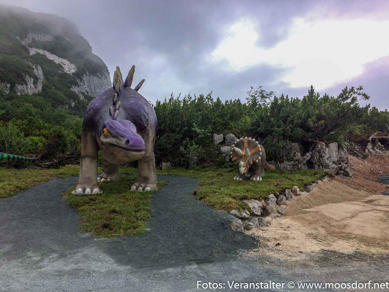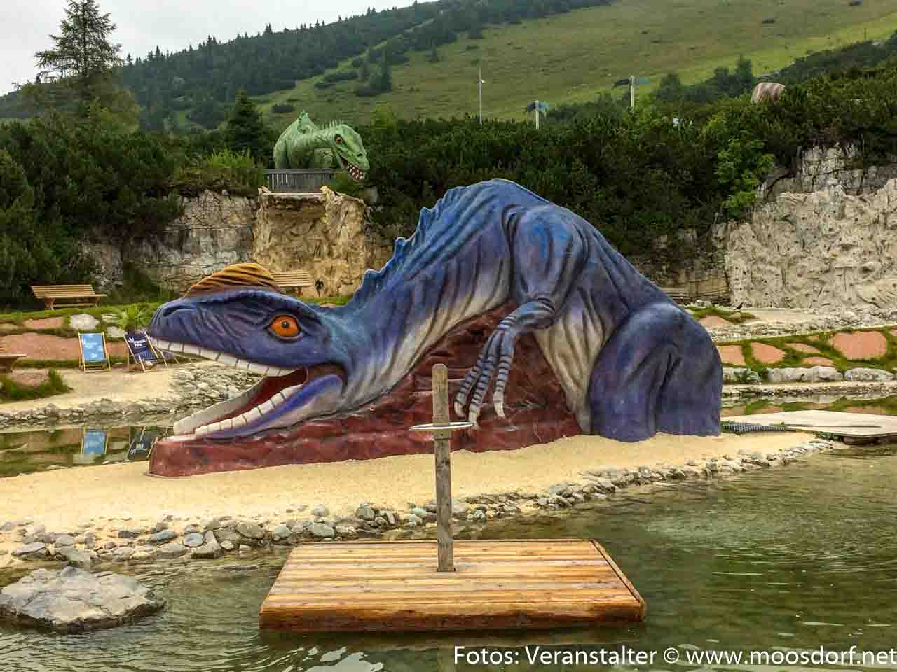 Dort erwartete uns auf der Steinplatte der Triassic-Park. Mit der Gondel ging es rauf auf den Berg, wo wir bei etwas kühlen Temperaturen den Berg erkundeten. Die Steinplatte ist wunderschön angelegt mit Sandstrand, Teich, Spielplatz und natürlichen vielen Dinos aus der Trias Zeit.