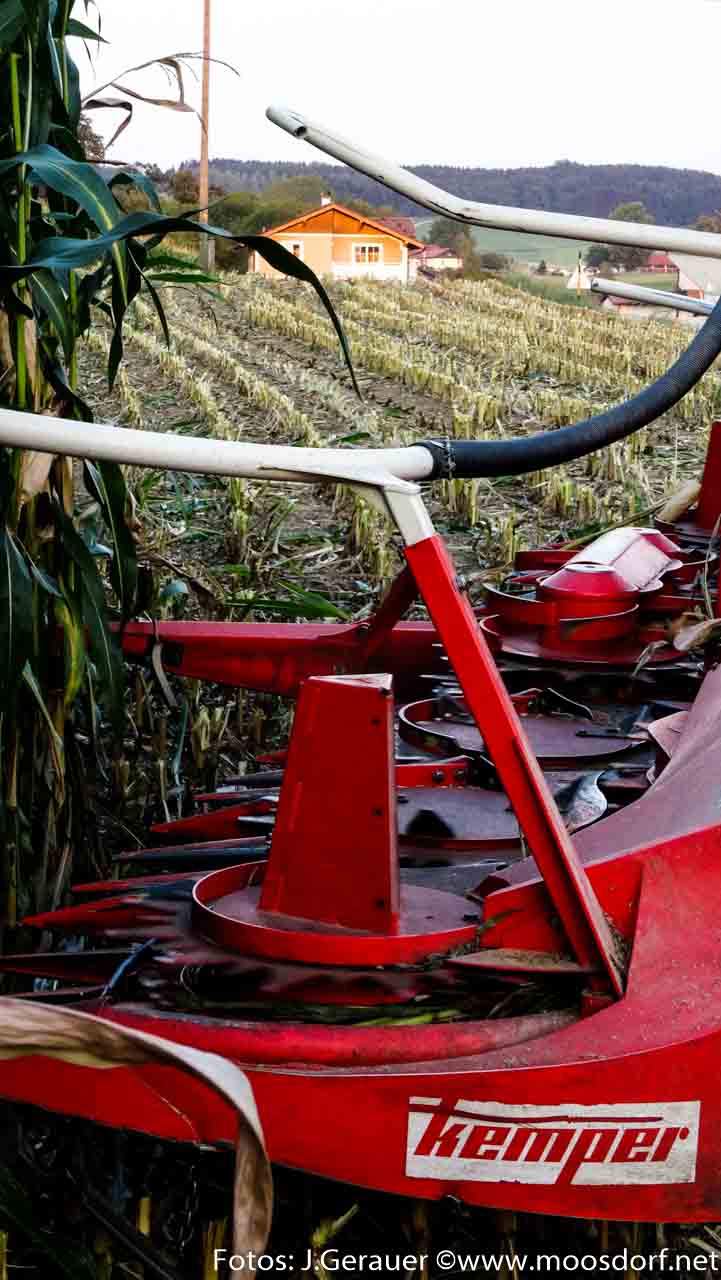 „Wie saftig noch oder schon trocken die Maiskörner sind, bestimmt den Zeitpunkt, wann der Kukuruz reif ist zum Dreschen! Meist ist das nicht vor Mitte September“, erklärt Rehrl sen. „Ich erinnere mich an regenreiche Jahre, wo der Boden so nass war, dass wir aufs Übertrocknen warten mussten, damit wir mit den Erntemaschinen ins Feld fahren konnten.