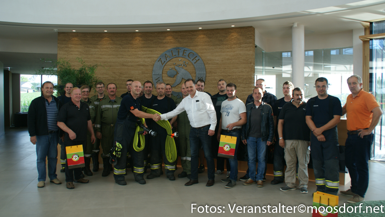 Der Geschäftsführer des Moosdorfer Gewürzveredlers Zaltech – Herr Helmut Gstöhl- kam aktiv auf die Feuerwehrfunktionäre zu und erklärte sich spontan bereit, dieses zeitgemäße Gerät zu sponsern. Zaltech produziert Gewürzmischungen, Aromen und Marinaden für die Lebensmittelindustrie. Diese funktionellen Produkte sind weltweit in über 40 Ländern der Erde vertreten.