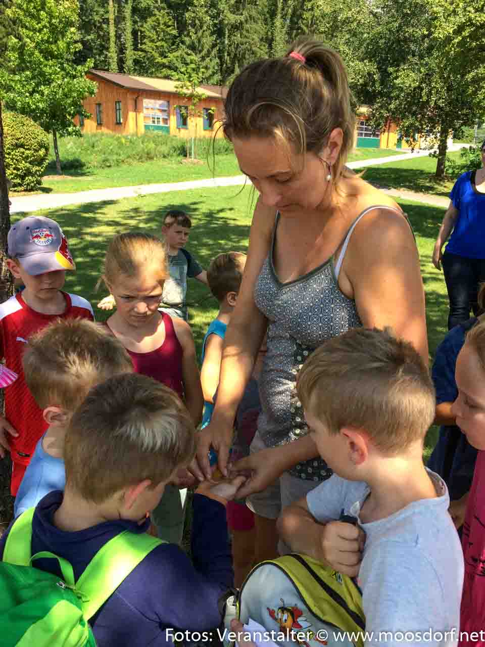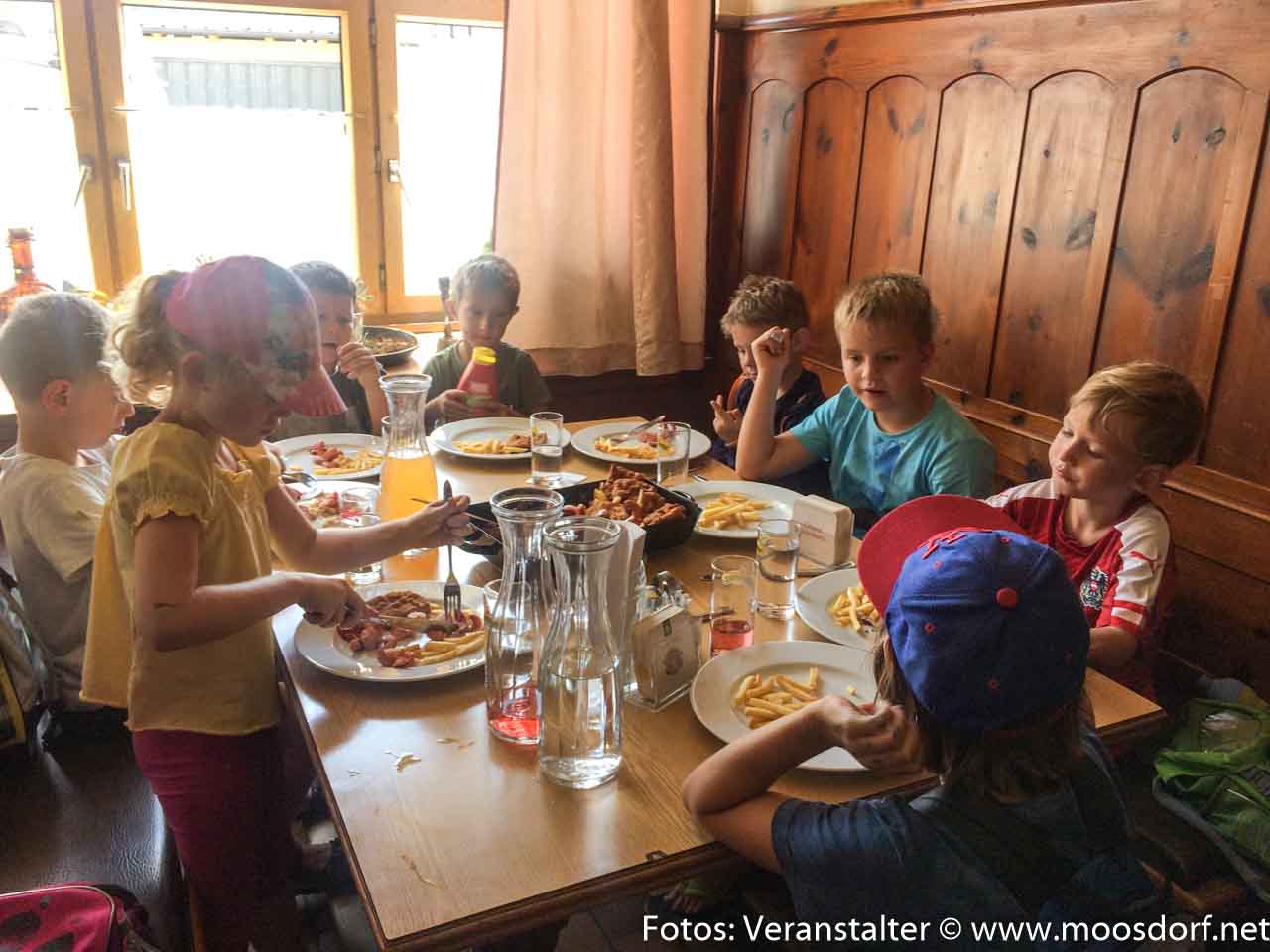 Mittag bekochte uns Hannes vom Gasthaus Dürager, der sich dann spontan entschloss etwas für die Ferienwoche beizutragen und die Kinder und Betreuer zum Essen einlud. Danke Hannes dafür! Unsere „kleinen“ Teilnehmer waren am Nachmittag mit Angelika bei der Umwelt und unsere „großen“ Teilnehmer bei Axel und dem Bogen schießen in Seeleiten.
