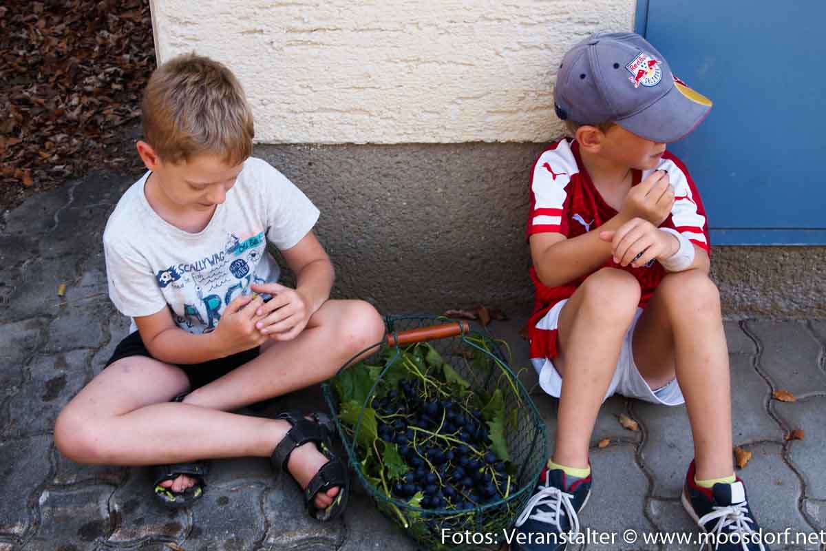 Zur Stärkung gab es von unserem Schulgarten die ersten Trauben die Schinagl Gerti vorbei brachte. Nach zwei Stunden wurden die Gruppen getauscht, damit jeder in den Genuss von Musik und Holz kam.